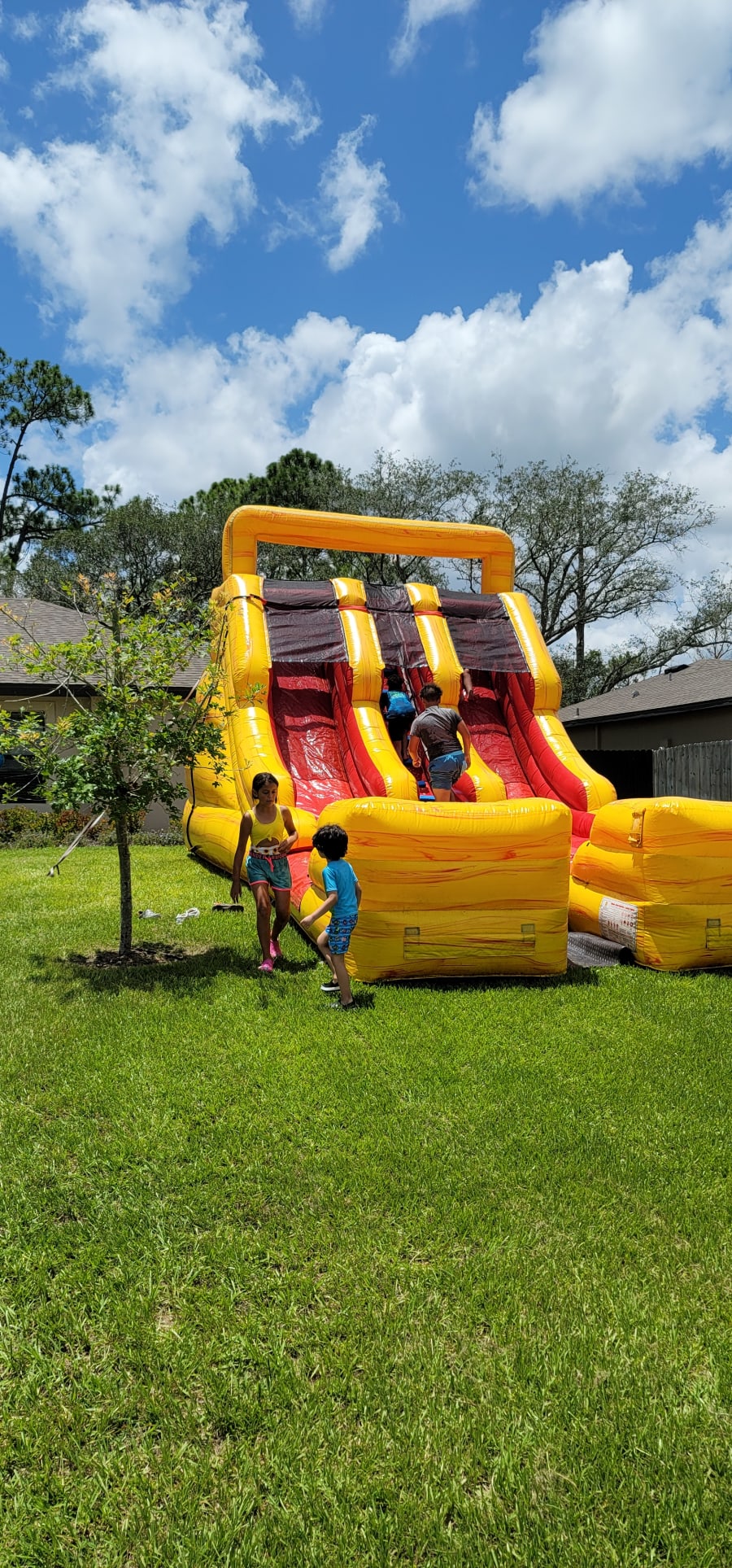 Race down both sides and splash to see who is fastest! 15 feet tall, 15 feet wide and 27 feet long.