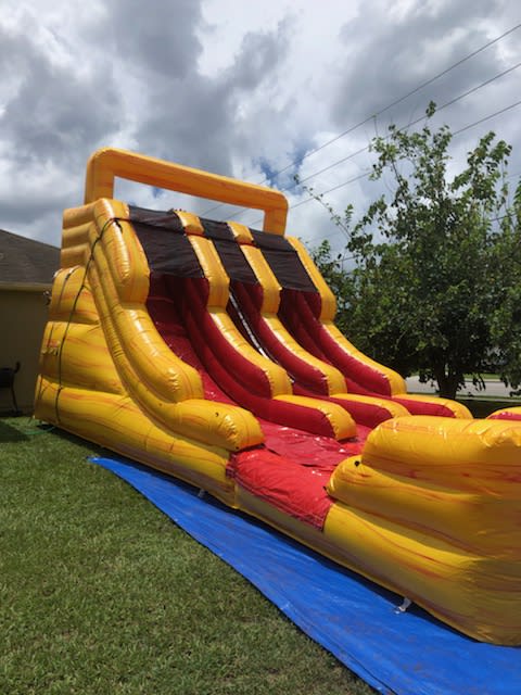 Double lanes for double the fun!!! This 15ft Double Lane Waterslide can be used wet or dry.